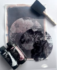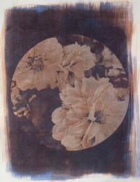 These are layered photographic prints using Solarfast dyes. I experimented with different combinations of colors and layering for these prints. I used a photo of flowers I took in the Central Garden at the Getty Center in Los Angeles, California.